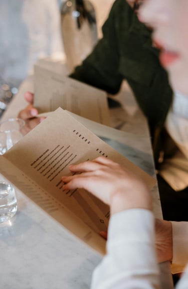 El diseño del menú debe guiar la mirada del cliente hacia los platillos que deseas promover. Utiliza técnicas como: